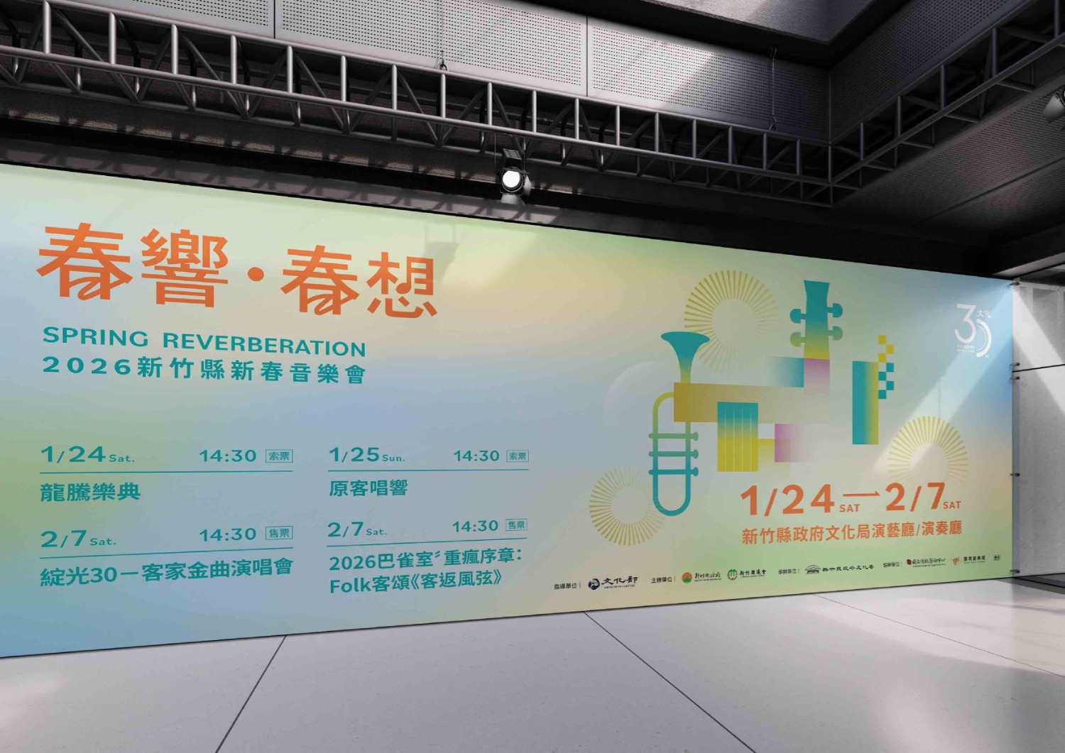 春響‧春想 - 2026 新竹縣新春音樂會 新春伊始,樂聲為序。 適逢新竹縣政府文化局邁入三十週年,以音樂為禮,回望深耕地方文化的三十載歲月,在交響樂的磅礡、原民與客家歌聲的溫暖交織中,感念過往、融會多元、啟動創新,共同見證文化薪火相傳、邁向未來的重要時刻。 一同用音樂迎新春,用旋律啟願! 指導單位:文化部 主辦單位:新竹縣政府、新竹縣議會 承辦單位:新竹縣政府文化局 協辦單位:國立傳統藝術中心、臺灣音樂館