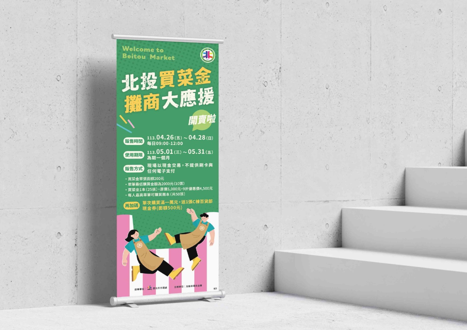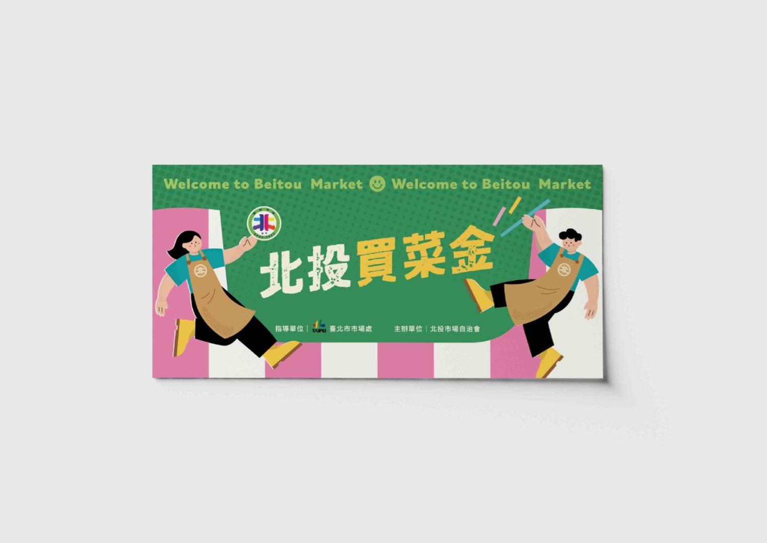 北投買菜金 攤商大應援 北投市場作為北投區傳統市場的經典代表,市場自治會連續多年舉辦行銷活動,今年特別在母親節檔期舉辦「北投買菜金,攤商大應援」,感謝鄉里對北投市場的長期支持,以最實惠的行動回饋鄉里。 指導單位:臺北市市場處 主辦單位:北投市場自治會