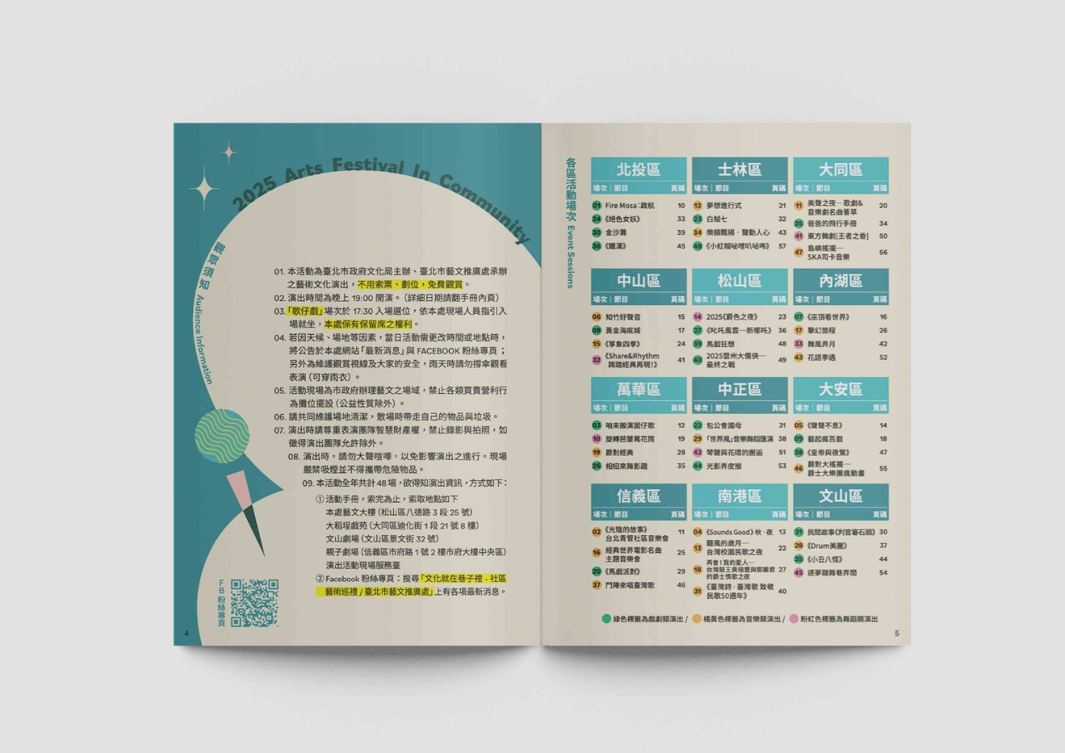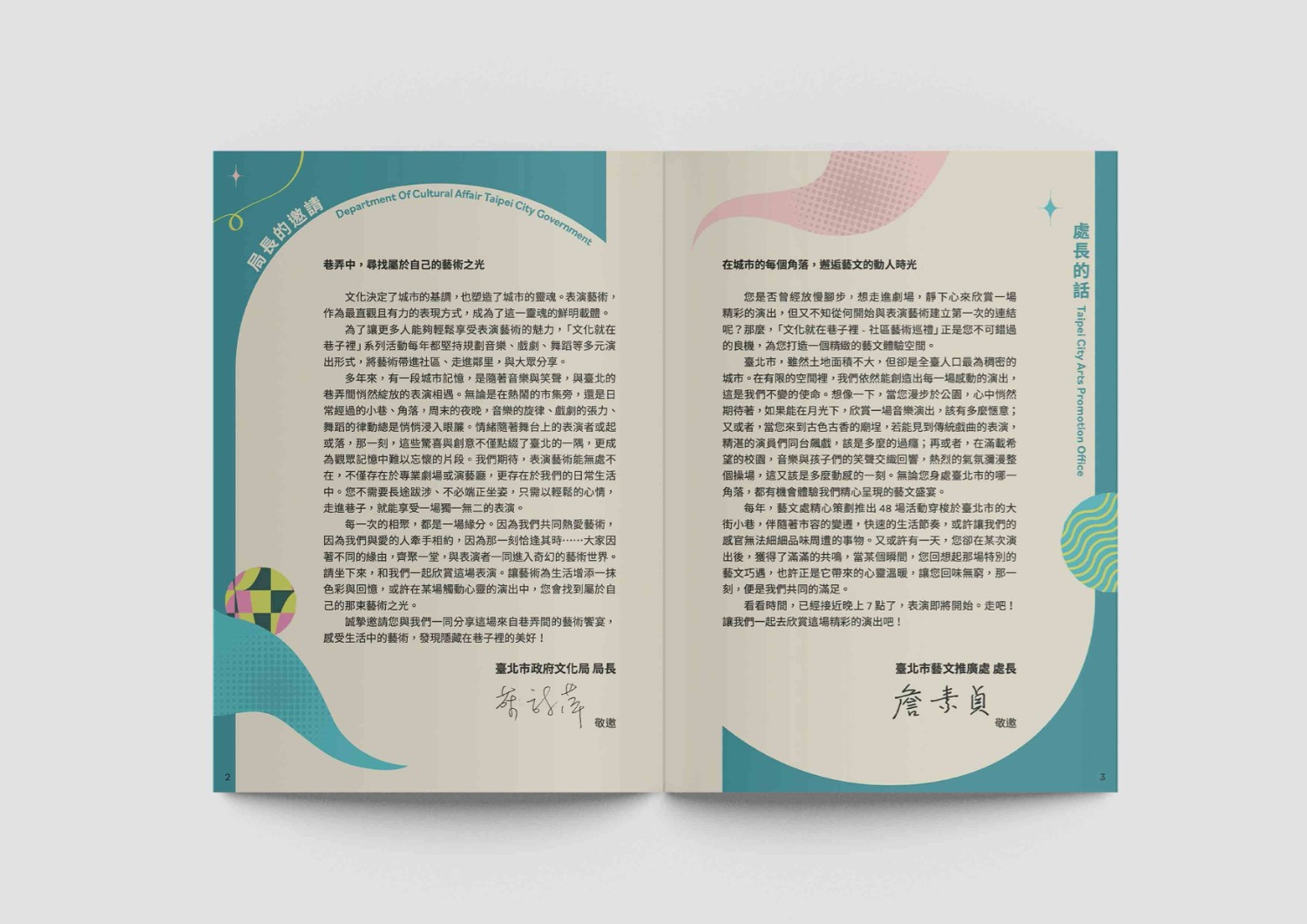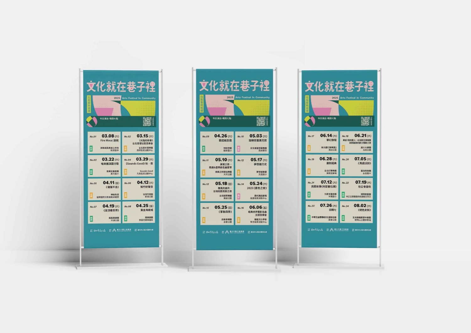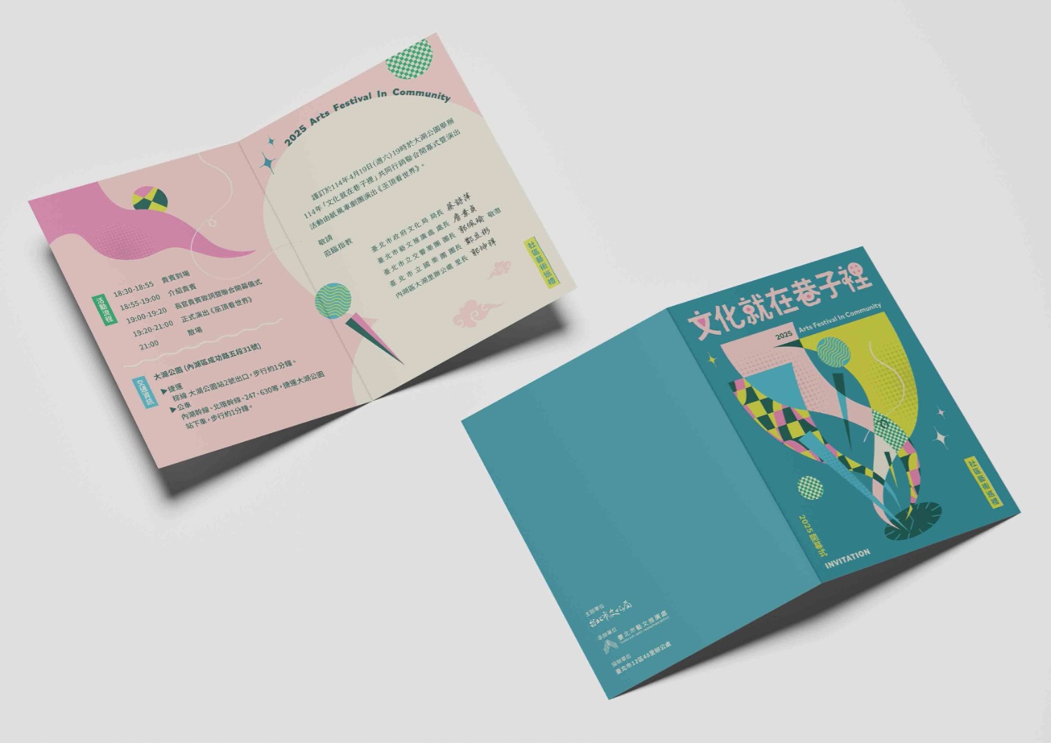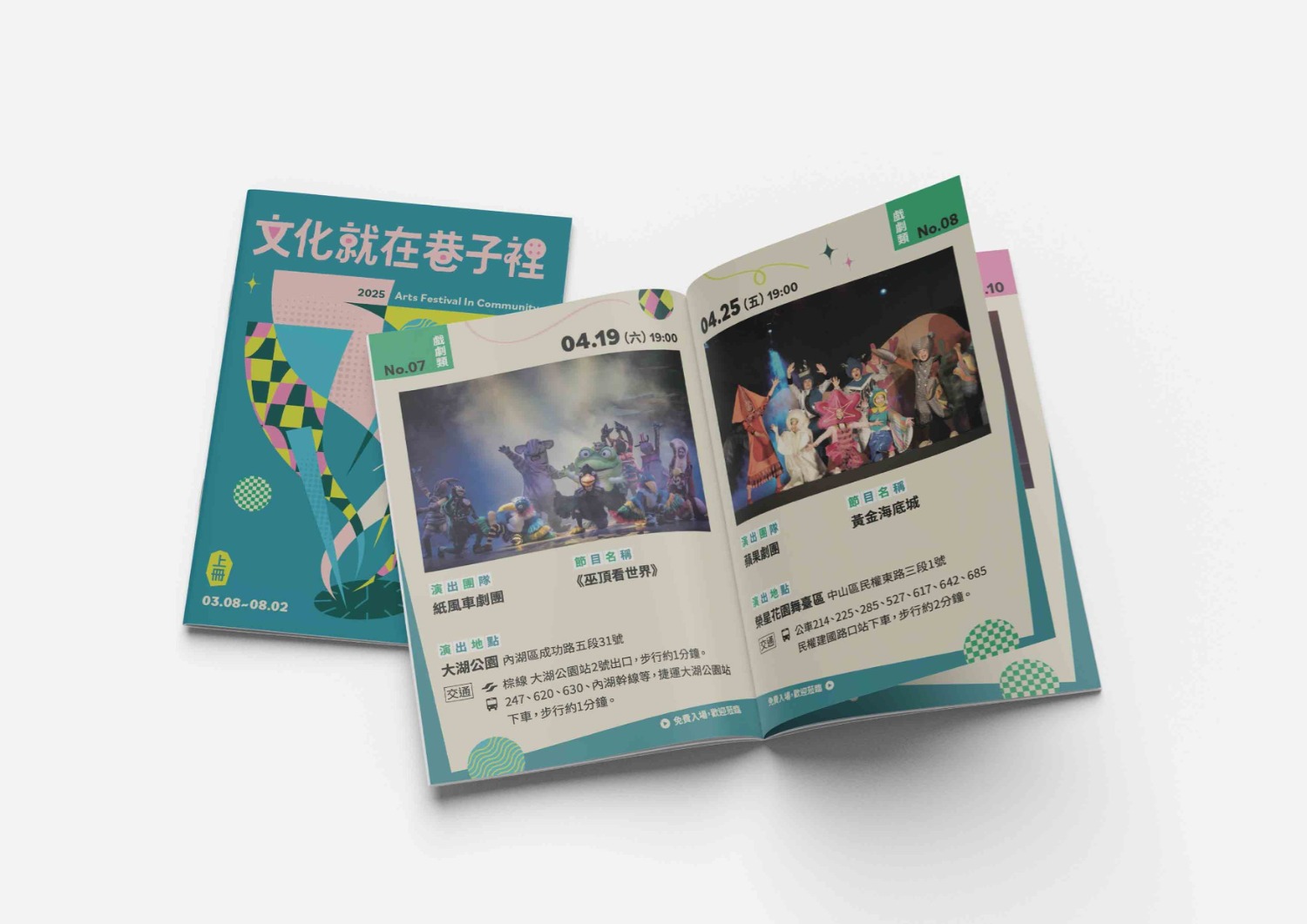 2025 文化就在巷子裡—社區藝術巡禮 「文化就在巷子裡」活動的宗旨是讓藝術走進每一位市民的日常生活,無論是音樂、戲劇或舞蹈等多元表演形式,都能讓市民輕鬆地接觸到藝術文化。本活動由臺北市政府文化局主辦,並由臺北市藝文推廣處、臺北市立交響樂團與臺北市立國樂團承辦。今年邀請到紙風車劇團作為開場,以其獨特的戲劇風格與創意表現,為市民帶來一場難得的藝文盛宴。 主辦單位:臺北市政府文化局 承辦單位:臺北市藝文推廣處 協辦單位:臺北市12區48里辦公處